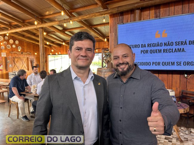 Sergio Moro destaca Zado, ex-prefeito de Santa Helena, como potencial nome para a Assembleia Legislativa, durante almoço em Medianeira