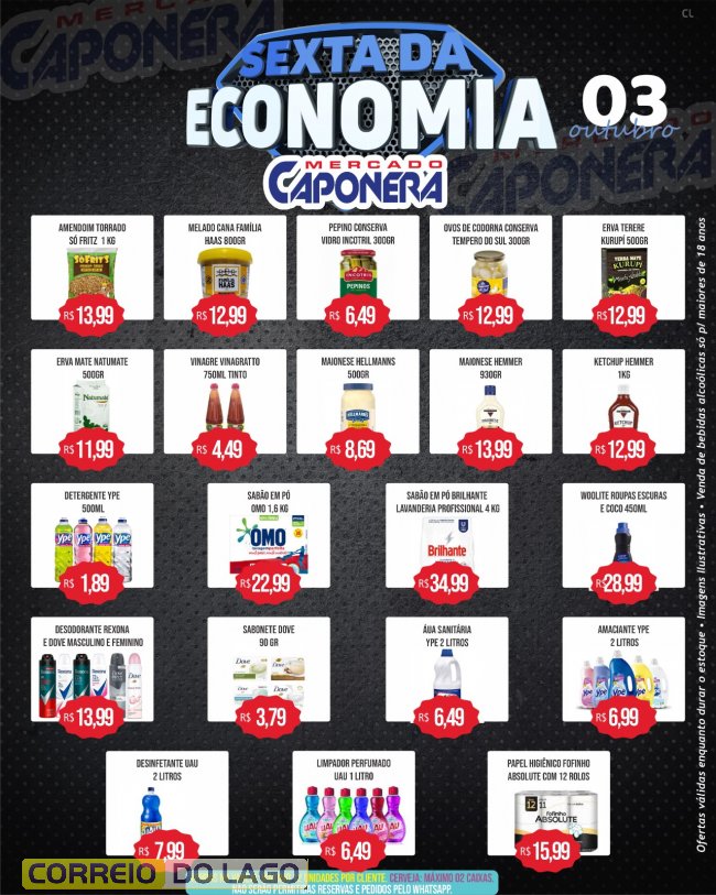 Nesta sexta-feira (3), o Mercado e Açougue Caponera em Santa Helena, realiza a Sexta da Economia, disponibilizando ofertas especiais em diversos produtos para os clientes.