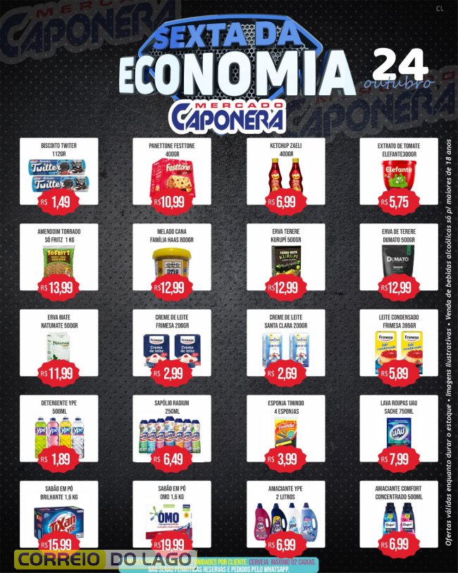 Nesta sexta-feira (24), o Mercado e Açougue Caponera em Santa Helena, realiza a Sexta da Economia, disponibilizando ofertas especiais em diversos produtos para os clientes.