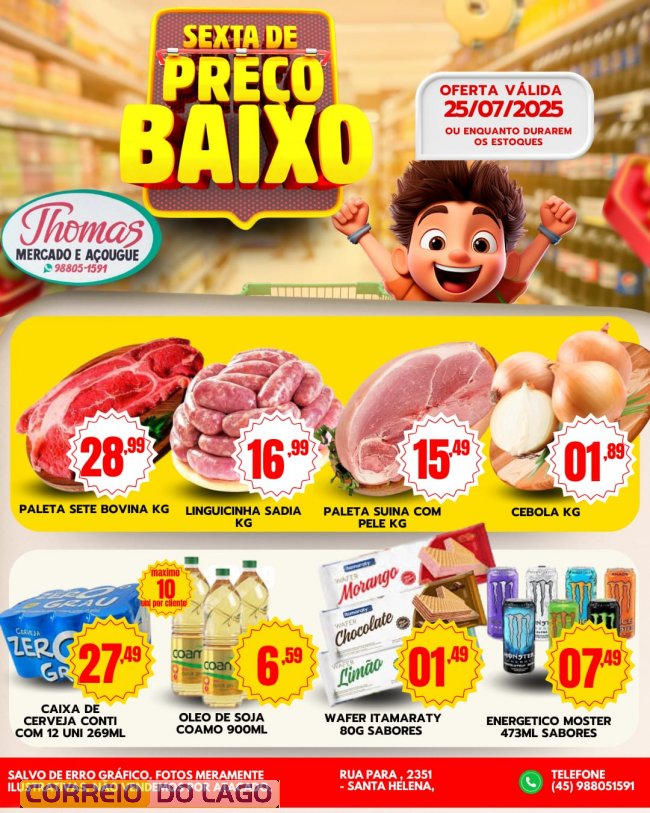 O Mercado e Açougue Thomas preparou muitas ofertas especiais para esta sexta-feira, 25 de julho, feriado do Dia do Colono e do Motorista em Santa Helena.