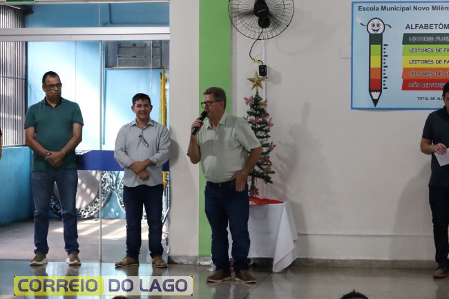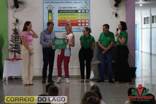Colaboradores e membros dos Conselhos da Sicredi também estiveram na entrega. O ato contou com a participação dos alunos do período Vespertino, professores e funcionários da Escola Novo Milênio. A Contadora de Histórias, Ana Paula Schneiders, também recebeu o apoio da Sicredi, pelo trabalho voluntário que desenvolve.
