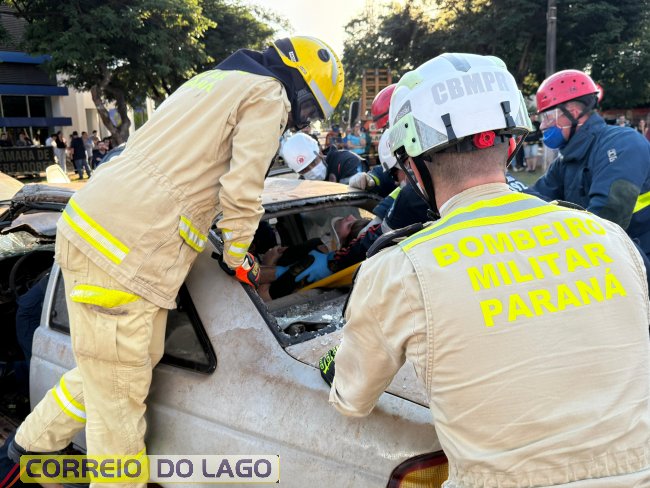 Uma simulação de resgate veicular com múltiplas vítimas foi realizada na tarde desta sexta-feira (23), em Santa Helena. A atividade integrou a programação do aniversário político-administrativo do município e marcou a inauguração da Escola de Trânsito, instalada na Praça do Colono.