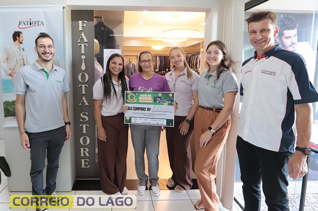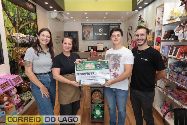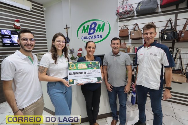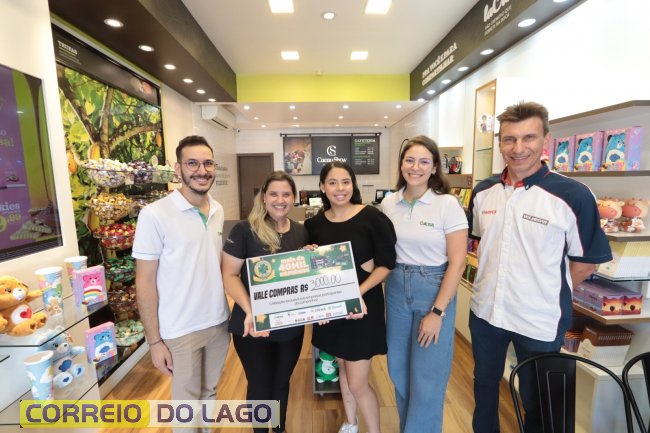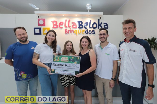 Também foram entregues vales-compras em diferentes valores. O prêmio de R$ 3.000,00 saiu para Pietra Lauana dos Santos Oliveira, que comprou na Cacau Show. Os vales de R$ 1.000,00 contemplaram Alexandra Kaiser, cliente do Supermercado Santa Helena; Arthur José de Brito e Querlinde Ires Scheidt Scheeren, ambos com compras realizadas na Foto Íris; Leonardo Luiz Uberti Redin, da Farmácia Real; Verani Koch, da Bellabeloka Brinquedos; e Denise Aparecida Zapani, da MBM Calçados.
