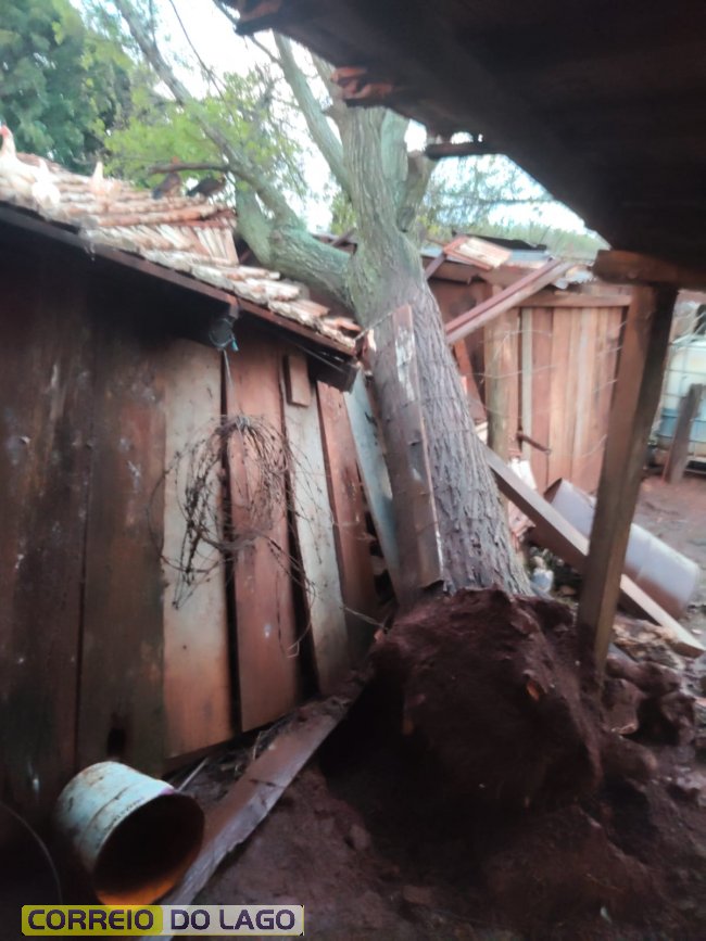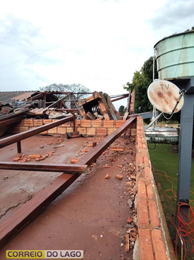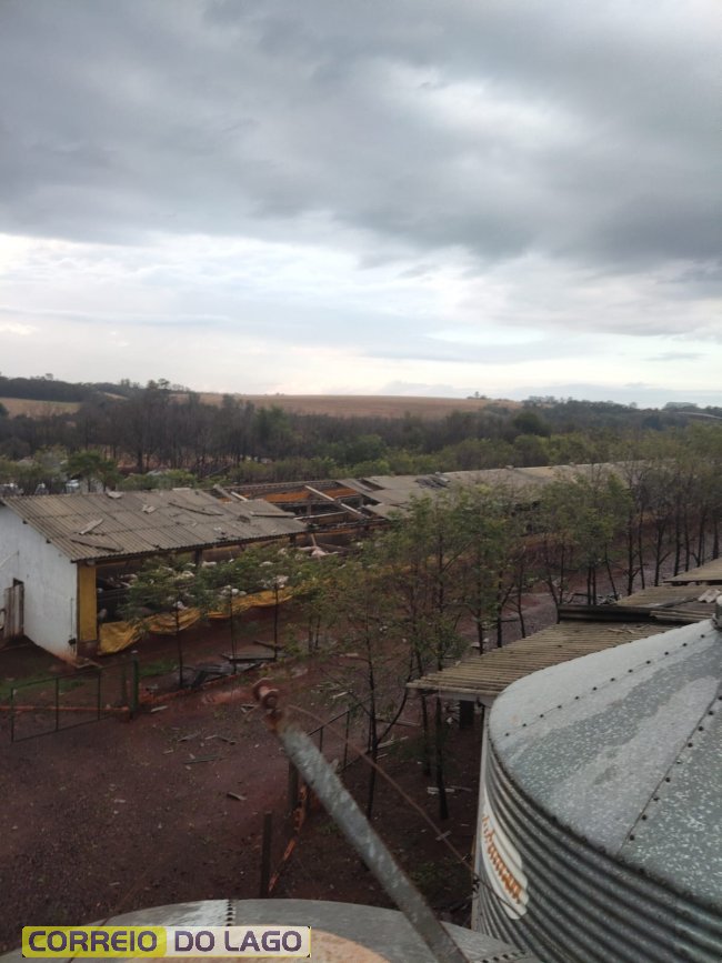 Os ventos intensos destelharam vária casas, galpões e possilgas de chiqueirões, além de danificarem outras estruturas agrícolas. Árvores foram derrubadas e postes da rede elétrica acabaram caindo, interrompendo o fornecimento de energia para diversas propriedades da região.