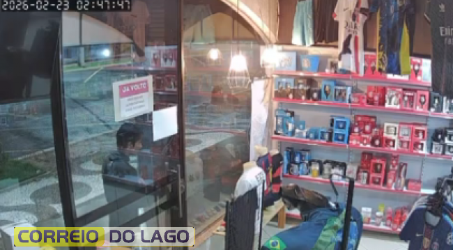De acordo com as informações apuradas, um suspeito se aproximou da porta e verificou se o estabelecimento estava devidamente trancado, tentando avaliar a possibilidade de abrir o acesso. A ação foi registrada pelo sistema de monitoramento da loja.
