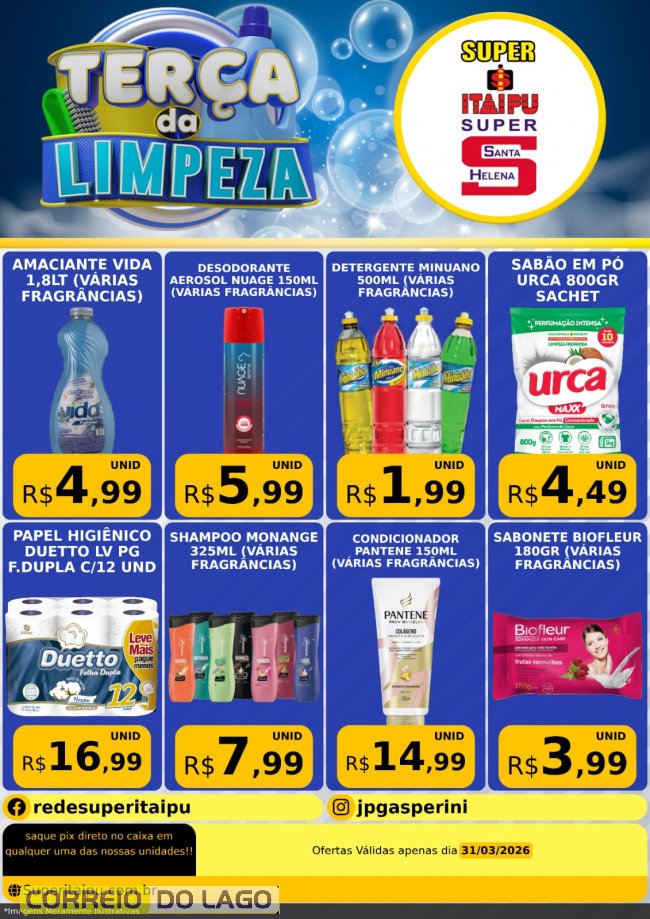 Terça da limpeza com ofertas imperdíveis é no Super Itaipu e no Super Santa Helena! Confira!