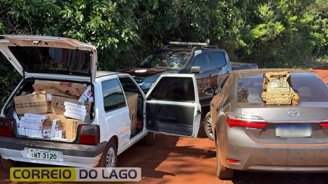 Durante a vistoria, foi constatado que o carro estava carregado com diversas caixas de cigarros de origem estrangeira. O veículo e a carga foram apreendidos e encaminhados à Receita Federal em Foz do Iguaçu para os procedimentos cabíveis.