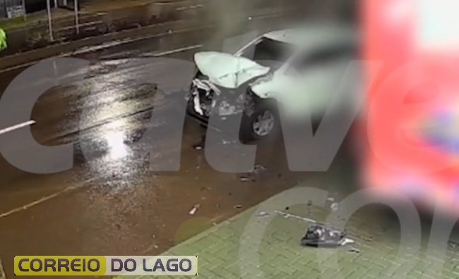 Um acidente noturno de grande impacto ocorreu na madrugada de domingo (02) na Avenida Carlos Gomes, em Cascavel. Uma câmera de segurança capturou o momento em que um veículo de passeio colidiu violentamente contra um trailer de alimentação.