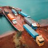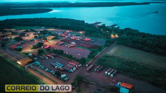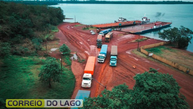Viagem experimental de nova balsa com 18 carretas chegou ao Porto Internacional de Santa Helena (Vídeo)