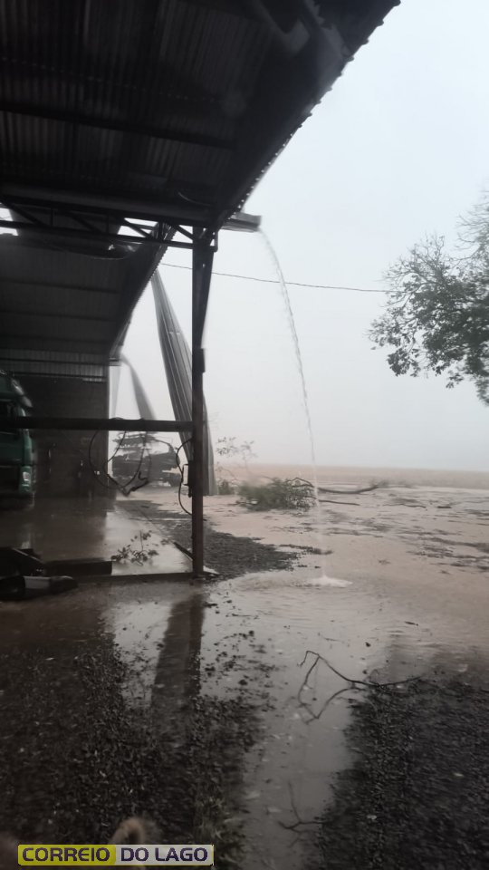 De acordo com o relato, os danos foram exclusivamente materiais. Os barracões utilizados para armazenar maquinário agrícola e caminhões foram parcialmente destelhados, e diversos galhos de árvores foram arrancados pela força do vento.