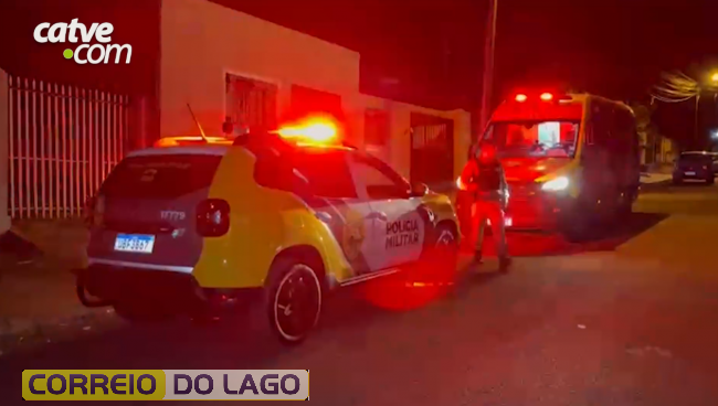 Uma mulher, de 37 anos, ficou ferida em imóvel na rua Pitágoras, no bairro Interlagos em Cascavel, na madrugada de domingo (8).