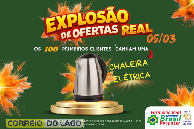 A Farmácia Real Rede Brasil Poupa Lar, em Santa Helena, promove nesta quinta-feira (5) um dia especial de promoções para os clientes. A ação, chamada Explosão de Ofertas Reais, reúne preços especiais em diversos produtos da loja, incluindo itens das linhas infantil, conveniência e higiene pessoal, como forma de valorizar os clientes que acompanham a trajetória da farmácia ao longo de seus 41 anos de atuação no município.