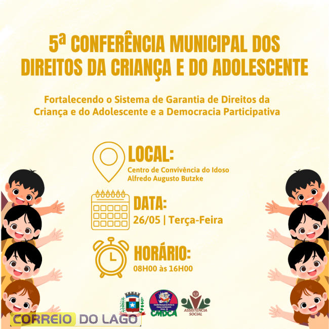 O evento será realizado no Centro de Convivência dos Idosos Alfredo Augusto Butzke, das 8h às 16h, e terá como tema “Fortalecendo o Sistema de Garantia de Direitos da Criança e do Adolescente e a Democracia Participativa”.