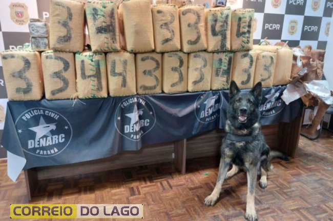 A droga estava escondida no compartimento de carga de uma carreta com placas de Santa Catarina, tracionada por um caminhão registrado no Paraná. O entorpecente foi localizado após a sinalização de um cão de faro, que indicou a presença de substância ilícita na parte traseira do veículo.