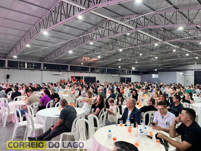 O Centro de Eventos Silom Schimidt, localizado no Balneário Terra das Águas, foi o palco da assembleia da Cresol Integração na noite desta quarta-feira (18). O evento reuniu um grande número de associados, que compareceram para acompanhar detalhadamente a prestação de contas e os resultados financeiros relativos ao exercício de 2025.
