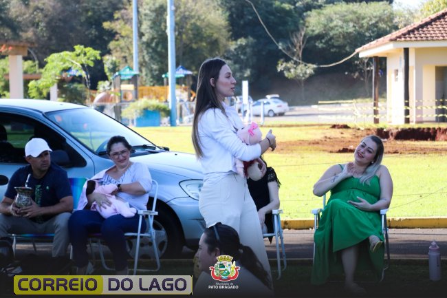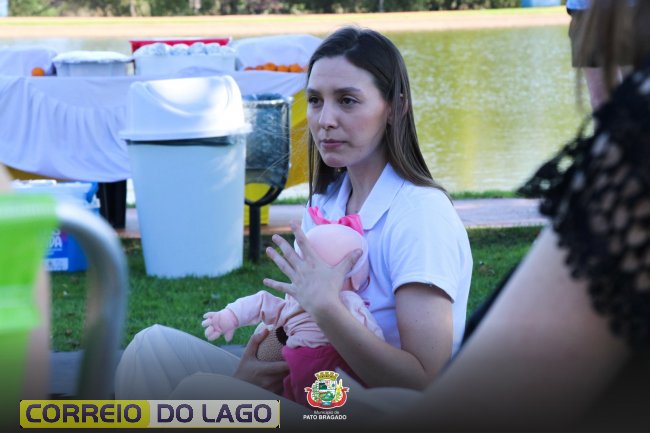 Neste sábado (16), Pato Bragado promoveu o Primeiro Mamaço, um evento que reuniu diversas mães e gestantes no lago municipal, em celebração ao Agosto Dourado, mês dedicado à conscientização sobre a amamentação.