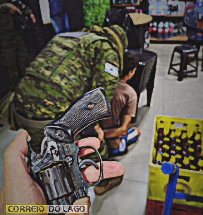 Durante a ação policial, os militares localizaram um indivíduo portando um revólver e 10 munições, configurando o crime de porte ilegal de arma de fogo. A situação foi imediatamente controlada pelas equipes no local.
