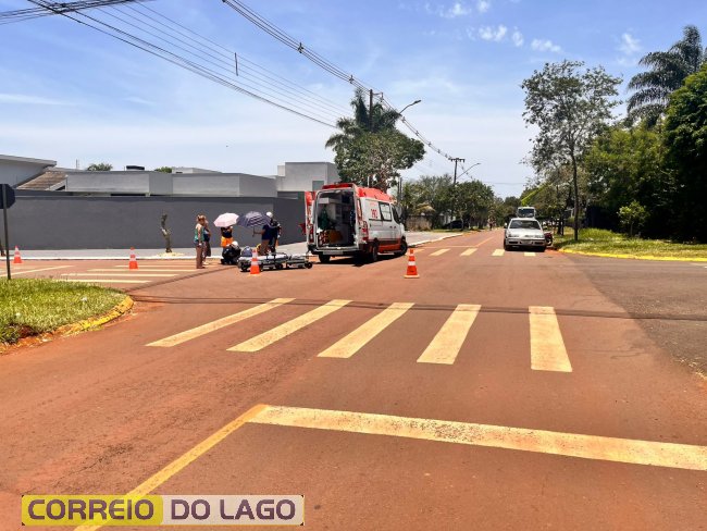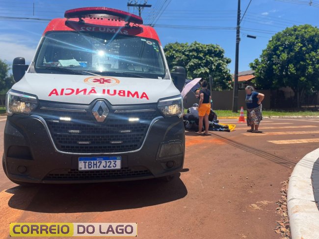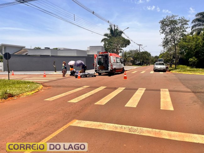 Acidente entre carro e moto paraguaia mobiliza SAMU e deixa motociclista ferido em Santa Helena
