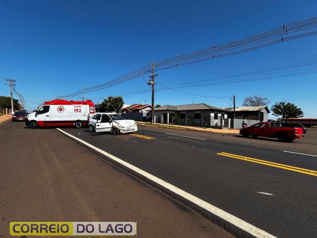 No início da tarde deste sábado (16), um acidente de trânsito foi registrado no perímetro urbano da Esquina Céu Azul, distrito de Santa Helena, envolvendo uma VW Saveiro e um Chevrolet Corsa.