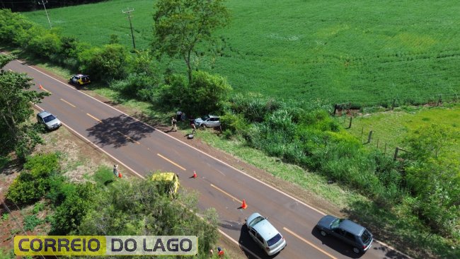 Um acidente de trânsito foi registrado por volta das 14h desta terça-feira (23) na PR-495, no Distrito do Portão Ocoí, em Missal. A batida envolveu dois carros, um Ford Focus branco e um Fox prata.