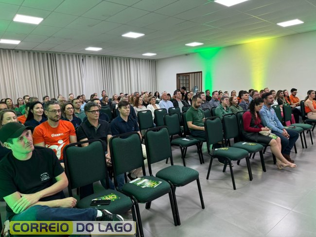Na sequência, os participantes acompanharam a palestra “Atitude que Move”, ministrada por Mariana Carvalho, parceira da Cresol, que apresentou uma abordagem motivacional com boa receptividade do público.