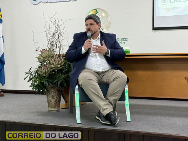 Durante o evento, foi realizado um bate-papo sobre indicadores financeiros e o cenário econômico atual com Vinicius Luiz Barreto, gerente regional do Sicoob Meridional, e João Everton Lopes de Sá Silva, gerente de Desenvolvimento de Negócios do Sicredi Vanguarda.