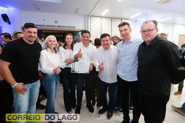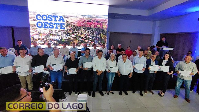 O ato ocorreu em Marechal Cândido Rondon e contou com a presença de prefeitos, vereadores, empresários e representantes de associações comerciais e empresariais do Oeste do Paraná, além de cooperativas.