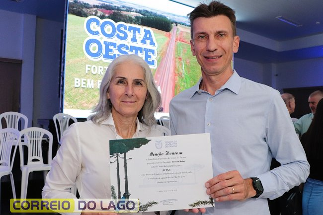A Associação Comercial e Empresarial de Santa Helena (Acisa), recebeu uma menção honrosa da Assembleia Legislativa do Paraná por contribuir com a confecção de um anteprojeto que visa a melhoria de rodovias da região lindeira ao lago de Itaipu. A honraria foi entregue ao presidente, Rogério Volpi e à diretora consultiva, Claudete Remor, nesta quarta-feira (19), em Marechal Cândido Rondon. O documento visa melhorias das rodovias PR-495 e PR-497.