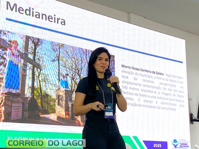 A Adetur Cataratas e Caminhos foi representada pela coordenadora técnica de atividades, Sara Fernanda de Moraes, com duas palestras: “Turismo Religioso na Região Cataratas e Caminhos do Lago Itaipu” e “Trilhas Religiosas e Caminho da Fé”, esta, em parceria com Camila Bassi Teixeira. As apresentações evidenciaram os principais atrativos turísticos religiosos da região e destacaram a Rota da Fé, iniciativa que serve de base para o Caminhos do Iguaçu e as trilhas de longo curso do território.