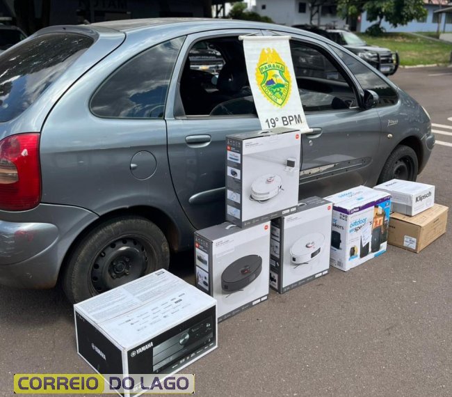 Durante a abordagem, o condutor foi identificado e, ao ser questionado, informou espontaneamente que transportava produtos eletrônicos oriundos do Paraguai no porta-malas do veículo. Na busca veicular, os policiais encontraram diversos itens, entre eles três aspiradores robô da marca Xiaomi, uma caixa de som all-weather outdoor, uma caixa de som automotiva Klipsch, uma caixa de som Marantz Stereo 70s e um aparelho de som da marca Yamaha.