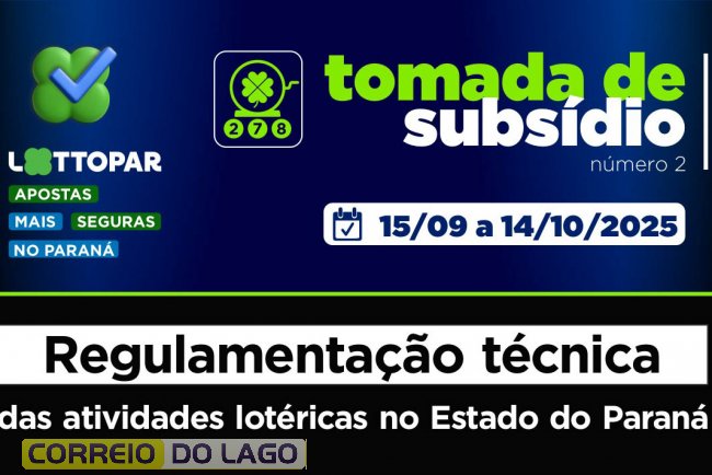 A Agência Reguladora de Serviços Públicos Delegados do Paraná (Agepar) lançou nesta segunda-feira (15) uma tomada de subsídios para receber contribuições da sociedade civil sobre a regulação complementar dos serviços lotéricos sob titularidade do Estado do Paraná, outorgados à Lottopar. As manifestações irão auxiliar a agência na elaboração da normativa, que deve contemplar critérios técnicos, econômicos, jurídicos e de fiscalização aplicáveis às modalidades de apostas de quota fixa, prognósticos, passiva, instantânea e jogos on-line.