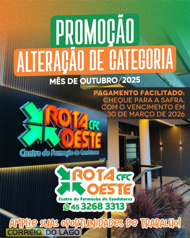Com a promoção, trabalhadores que desejam novas possibilidades no setor de transportes podem iniciar a mudança de categoria ainda neste mês e contar com um prazo estendido para quitar o valor. A condição está disponível no CFC Rota Oeste em Santa Helena.