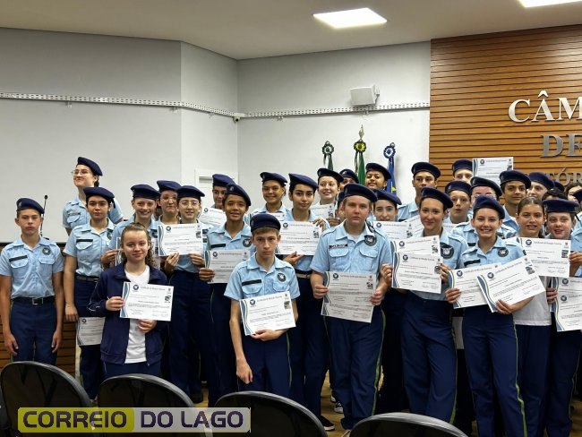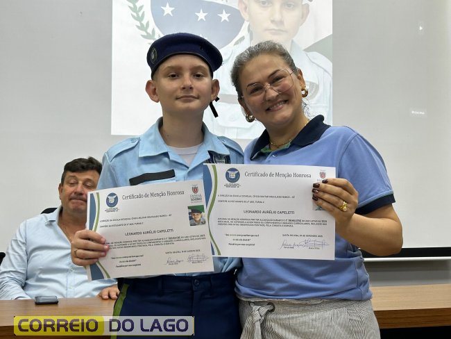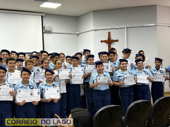 Alunos da Escola Cívico-Militar Graciliano Ramos de Santa Helena recebem certificados por bom desempenho