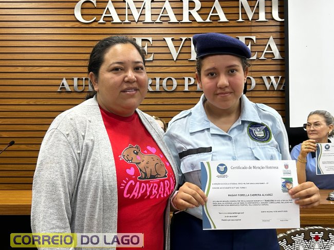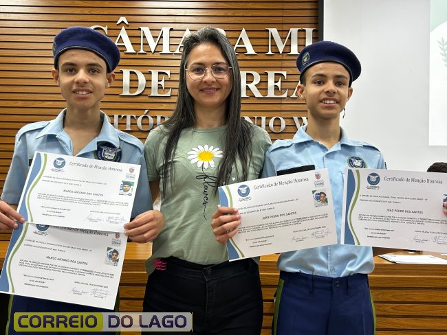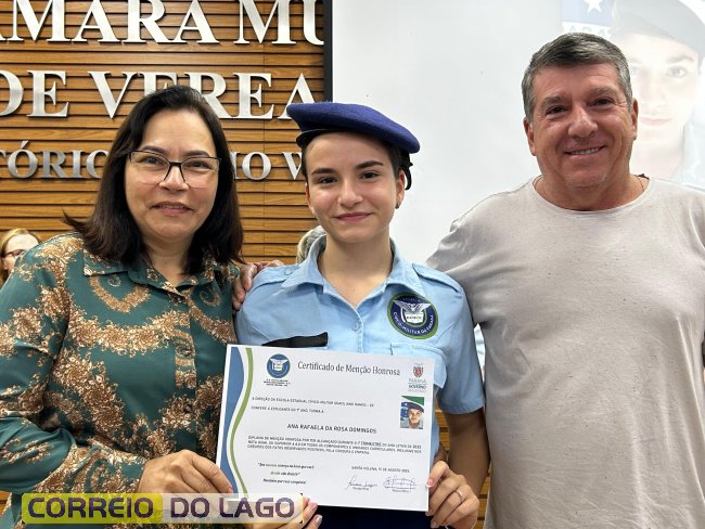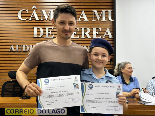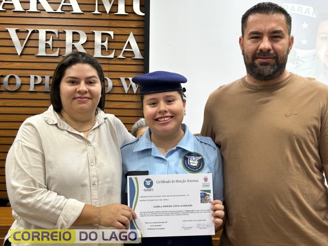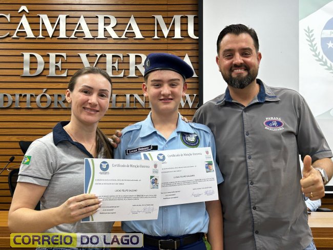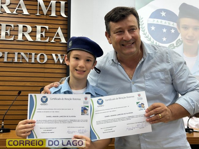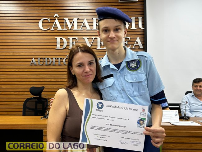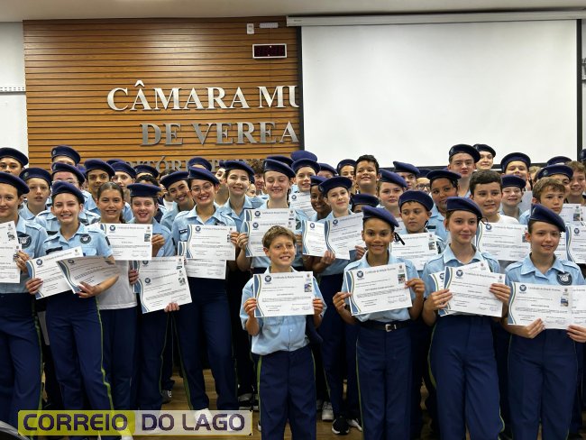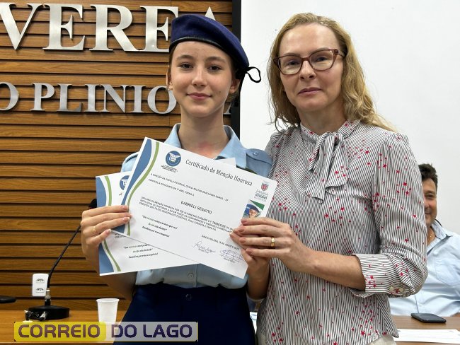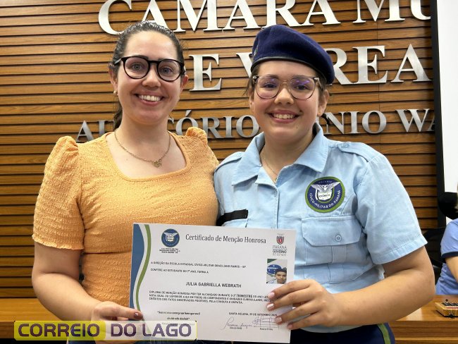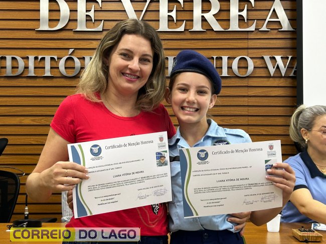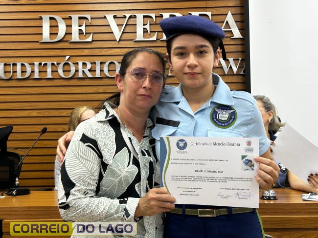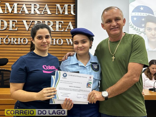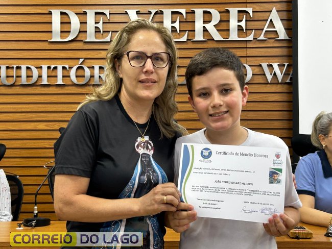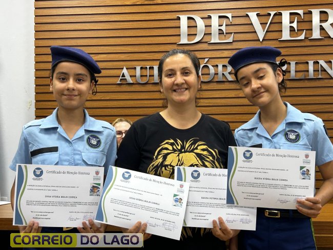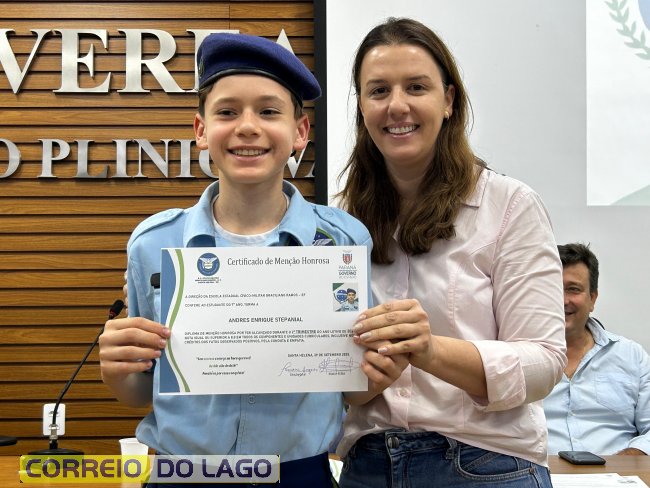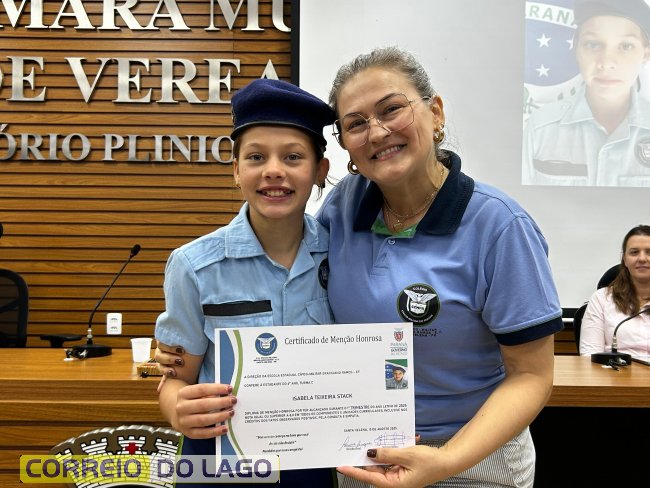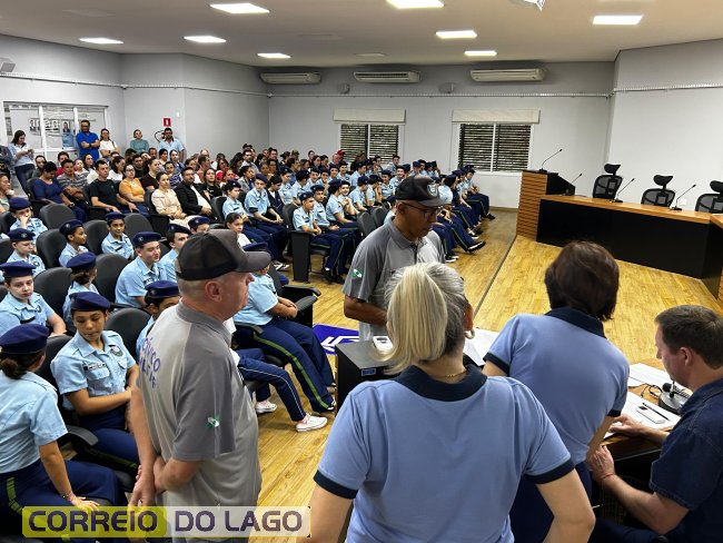 Na manhã desta quarta-feira (01), a Câmara de Vereadores de Santa Helena foi palco de uma solenidade especial da Escola Estadual Cívico-Militar Graciliano Ramos. Durante o evento, alunos que se destacaram nos dois primeiros trimestres receberam certificados de regularidade em suas notas, além de menções honrosas por atitudes exemplares.