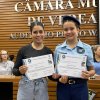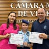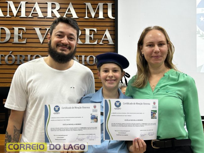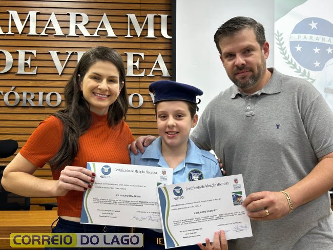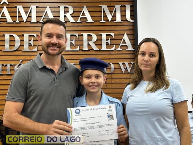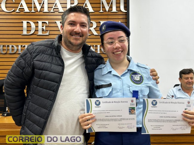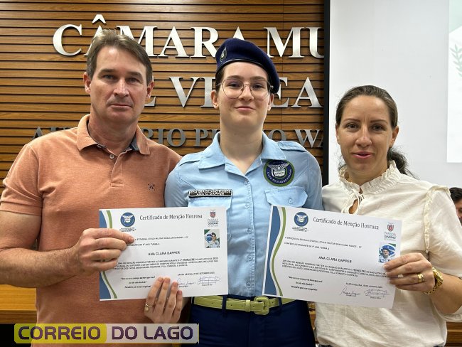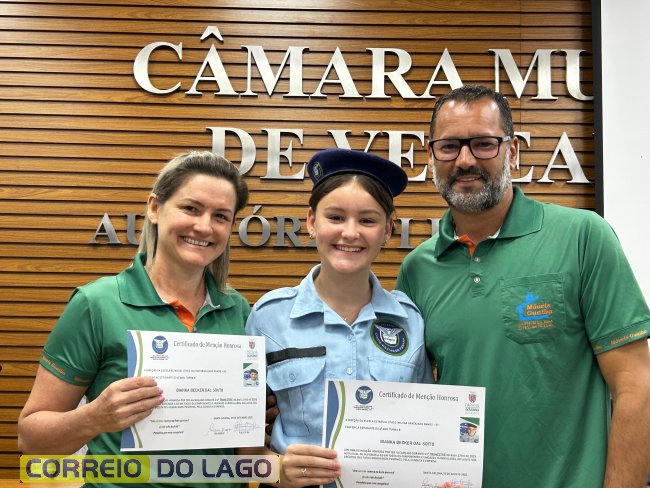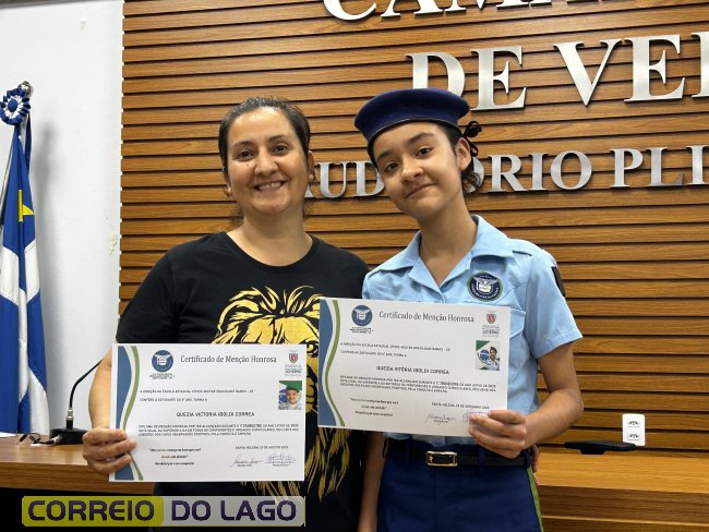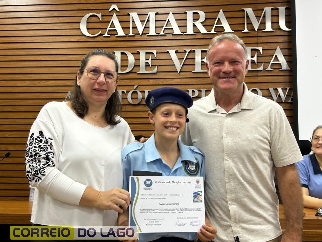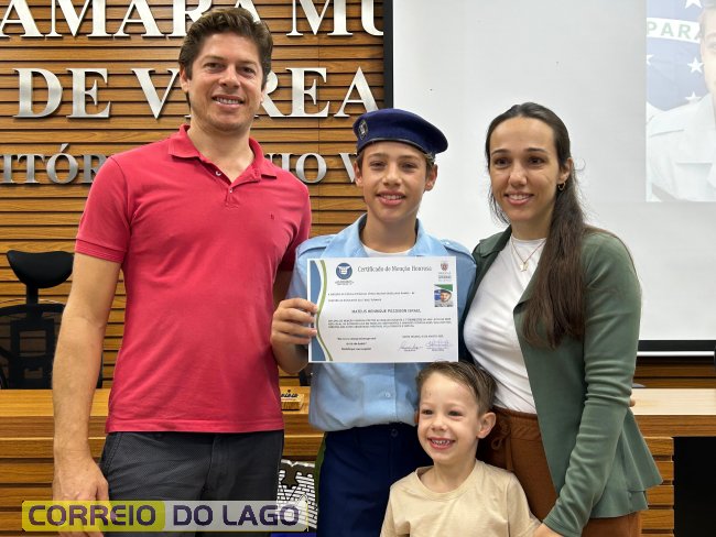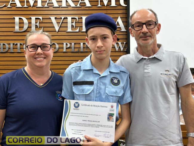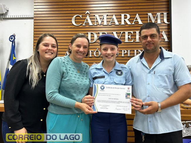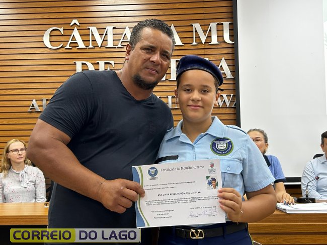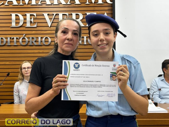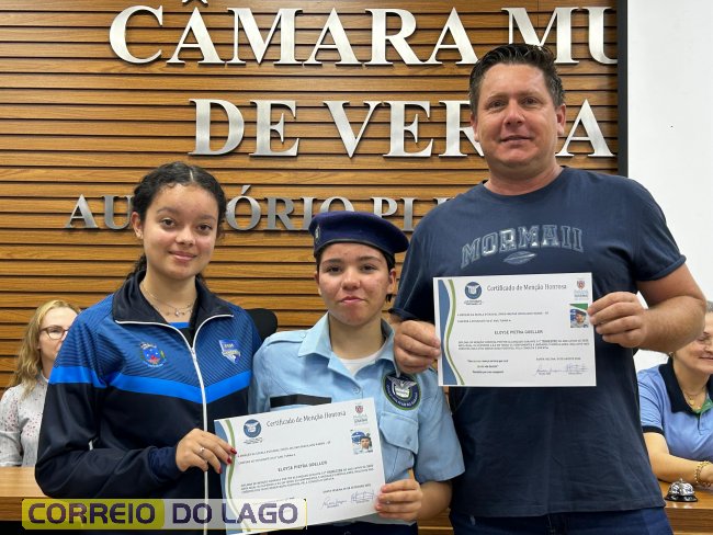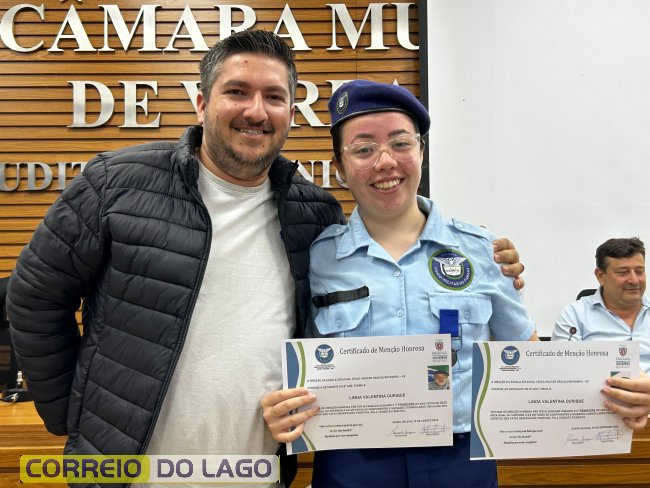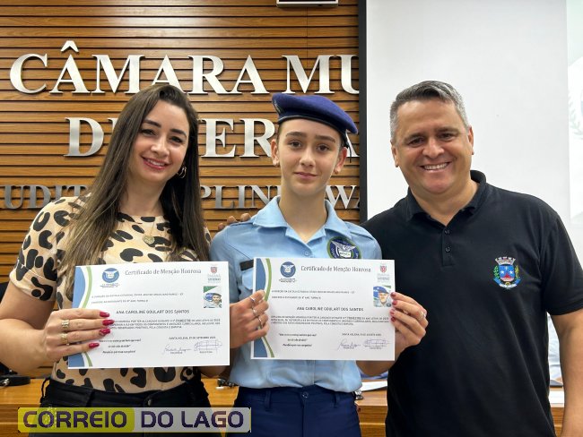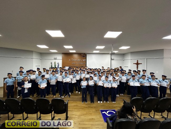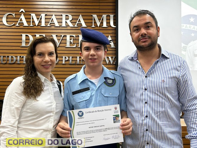 Na manhã desta quarta-feira (01), a Câmara de Vereadores de Santa Helena foi palco de uma solenidade especial da Escola Estadual Cívico-Militar Graciliano Ramos. Durante o evento, alunos que se destacaram nos dois primeiros trimestres receberam certificados de regularidade em suas notas, além de menções honrosas por atitudes exemplares.