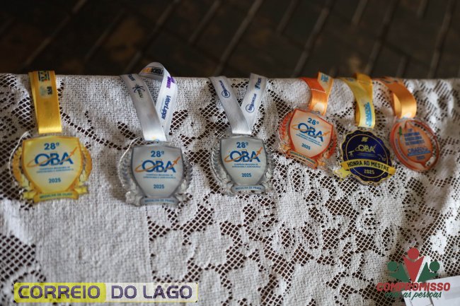 Ao todo foram 33 medalhas entregues, sendo 05 da OBA, 27 da OBMEP e uma no Lançamento de Foguetes