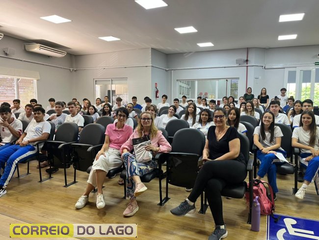 Alunos do Colégio Humberto de Alencar Castelo Branco participam de palestra sobre redação do Enem na Câmara Municipal de Santa Helena