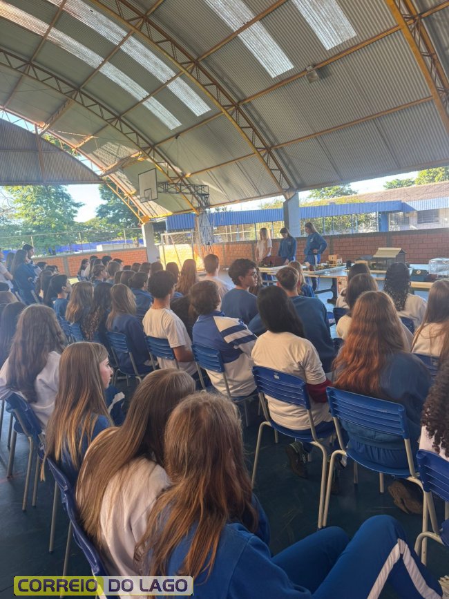 Na manhã desta segunda-feira (19), alunos do 3º ano do curso técnico em Agronegócio do Colégio Estadual Alencar Castelo Branco de Santa Helena, orientados pela professora Cíntia Arruda, realizaram uma apresentação especial voltada às demais turmas da instituição. A atividade fez parte de um projeto pedagógico que simula o desenvolvimento de uma empresa voltada ao perfil de consumo da região Oeste do Paraná.