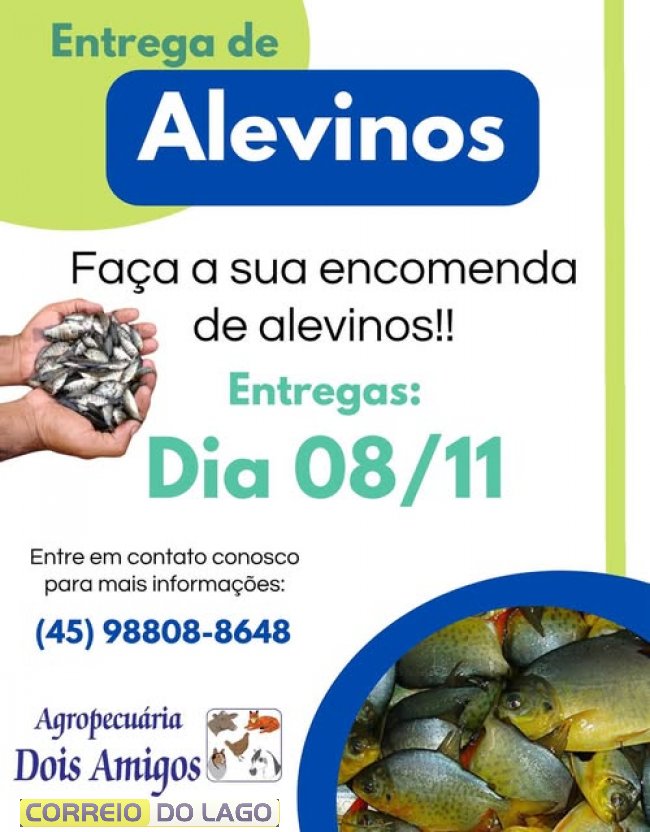 Além disso, já estão abertas as encomendas de alevinos, com a primeira entrega marcada para o dia 8 de novembro. É a oportunidade perfeita para quem deseja iniciar ou ampliar sua criação de peixes.