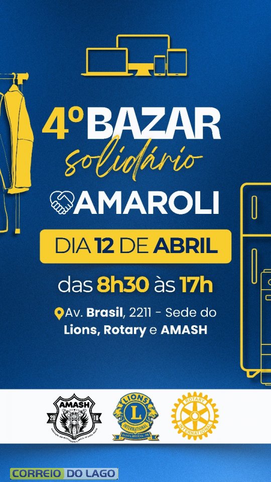 Rotary Club, Lions Clube e AMASH - Associação dos Motociclistas de Santa Helena, realizam neste sábado (12), a partir das 8h30, o 4º Bazar Solidário de Inverno. A ação conjunta das entidades, reunidas sob a sigla AMAROLI, acontecerá na sede das organizações, localizada na Avenida Brasil, nº 2211, em frente ao Super Itaipu.