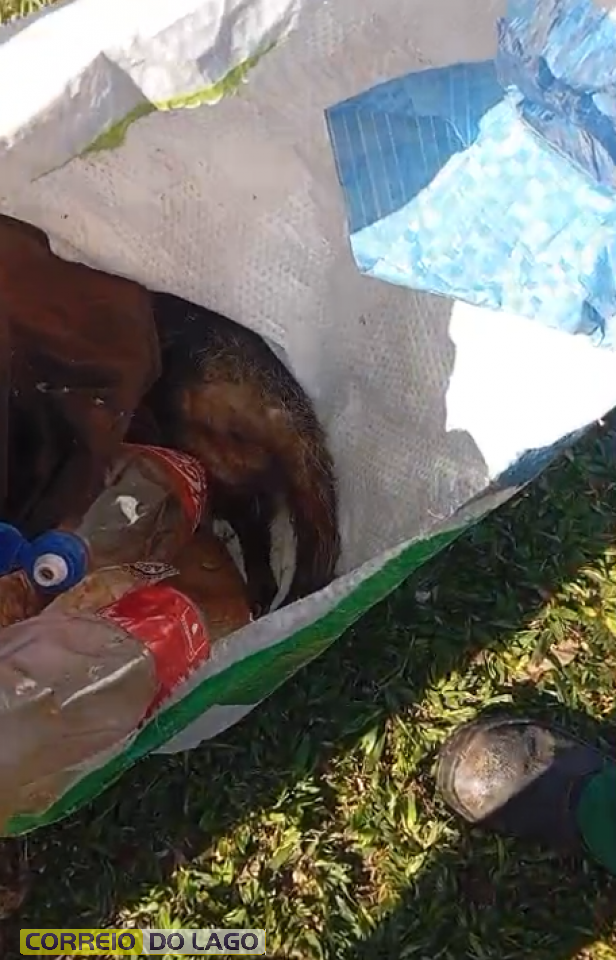 De acordo com relatos, a sacola já exalava forte odor devido ao estado de decomposição do animal.