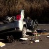 Em imagens feitas no local, é possível ver que o carro ficou completamente destruído.