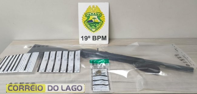 Ao ser questionado sobre a arma, o indivíduo apresentou versões contraditórias, mas acabou admitindo que mantinha o armamento em sua residência. Durante a verificação, os policiais apreenderam uma espingarda calibre .22, que estava carregada com nove munições intactas.