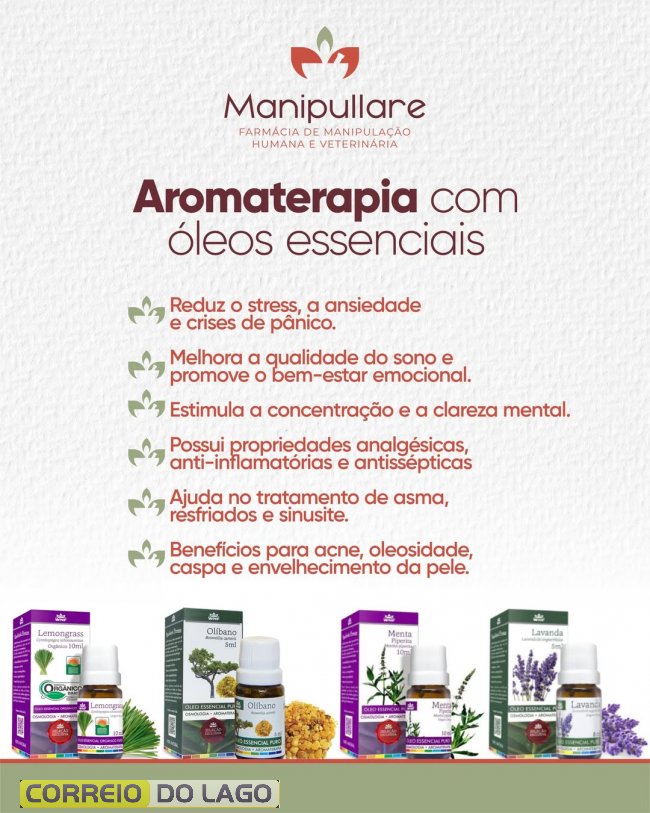 Aromaterapia oferece equilíbrio físico, mental e emocional com óleos essenciais na Manipullare em Santa Helena