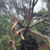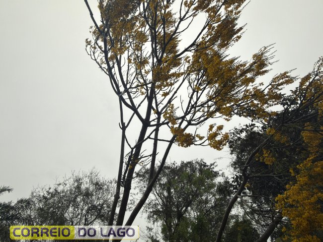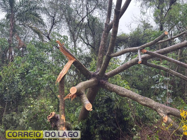 Os galhos atingiram fios de energia, e equipes de segurança foram acionadas para remover os galhos e detritos do local.