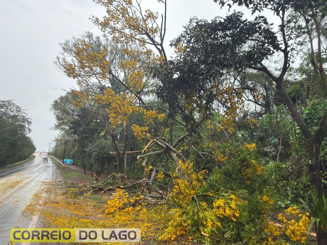 Na manhã desta segunda-feira (22), uma árvore de grande porte caiu no acostamento da PR-317, no sentido Sub-Sede a Santa Helena, devido aos ventos fortes, sem interromper o tráfego da via.