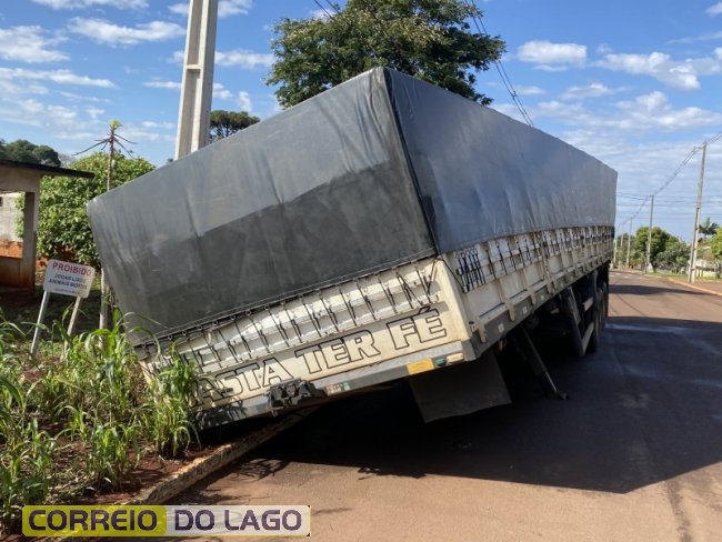 A situação aconteceu após o asfalto ceder e, consequentemente, os pés de apoio do reboque afundaram.
