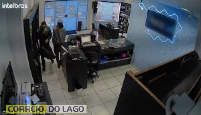 As imagens das câmeras mostram o momento em que o carro prato estaciona próximo ao local. Dois suspeitos descem, entram na loja, trancam a entrada e começam a recolher os itens, colocando-os em uma bolsa. Após o roubo, os três fugiram em direção à BR-277.