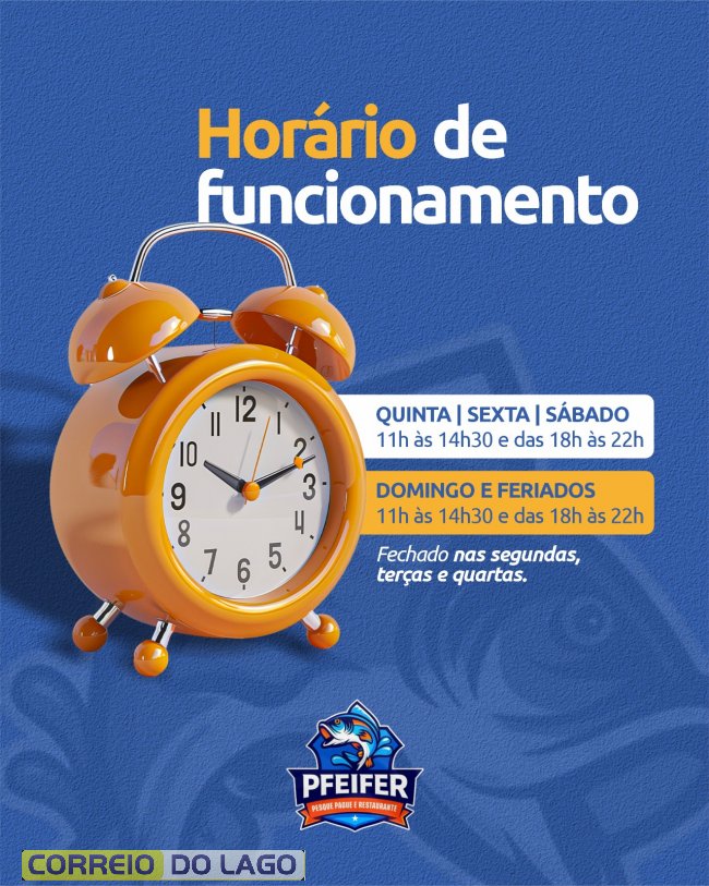 O Pesque Pague Restaurante Pfeifer, em Santa Helena, informa os horários de atendimento para quem busca boa comida e um ambiente tranquilo para reunir a família. O local reúne gastronomia e lazer em um espaço pensado para momentos de descanso no fim de semana.
