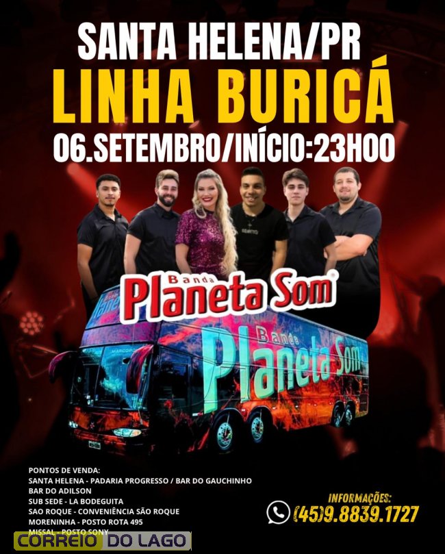 A comunidade da Linha Buricá, em Santa Helena, será palco de um animado baile com a Banda Planeta Som neste sábado (6), a partir das 23h.